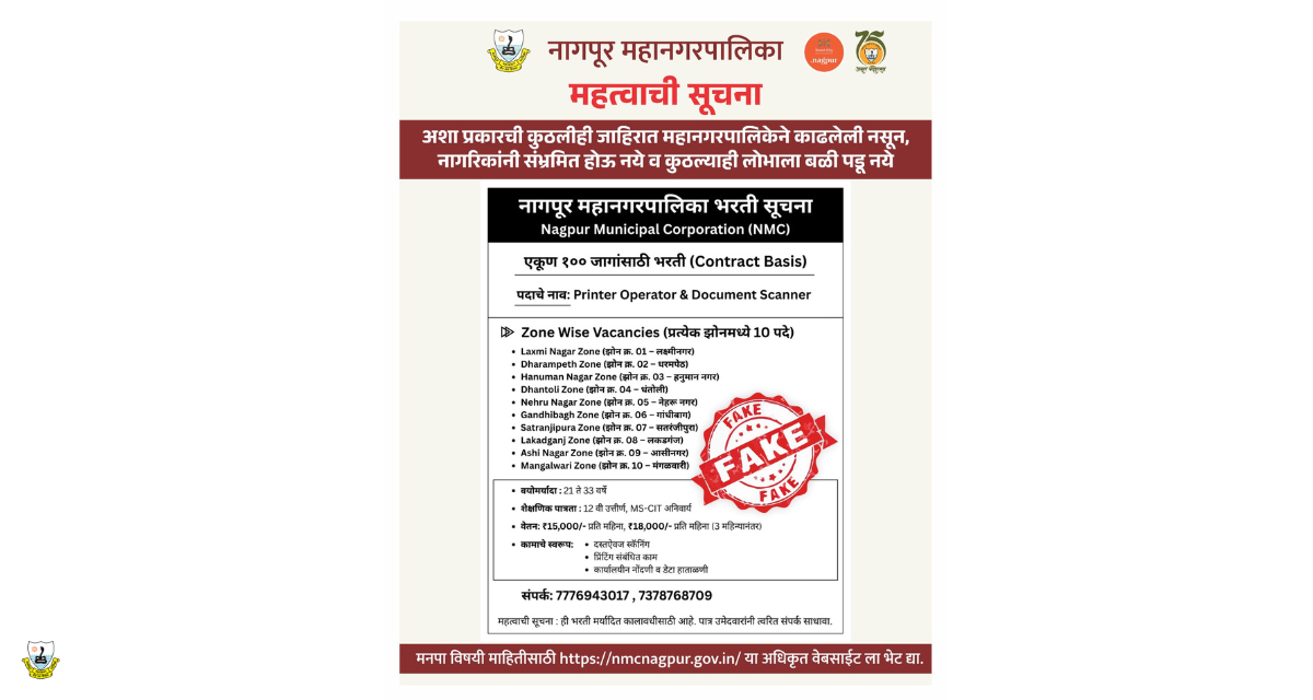 बनावट भरती जाहिरातप्रकरणी मनपाची पोलिसात तक्रार
